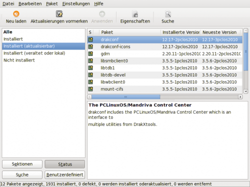 Als erstes sollten Sie die Paketquellen aktualisieren, dazu klicken Sie auf Neu laden (Reload).