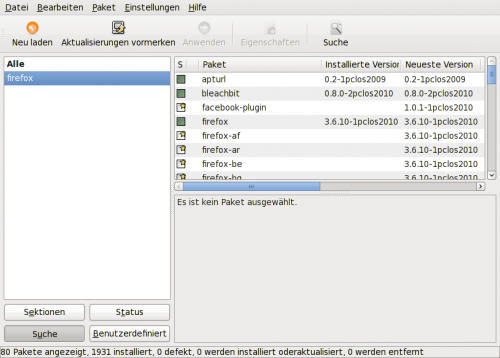Sie können auch direkt in der rechten Fensterhälfte suchen, in dem Sie einfach auf ein Paket klicken und dann den Namen des zu suchenden Pakets mittels der Tastatur schreiben.